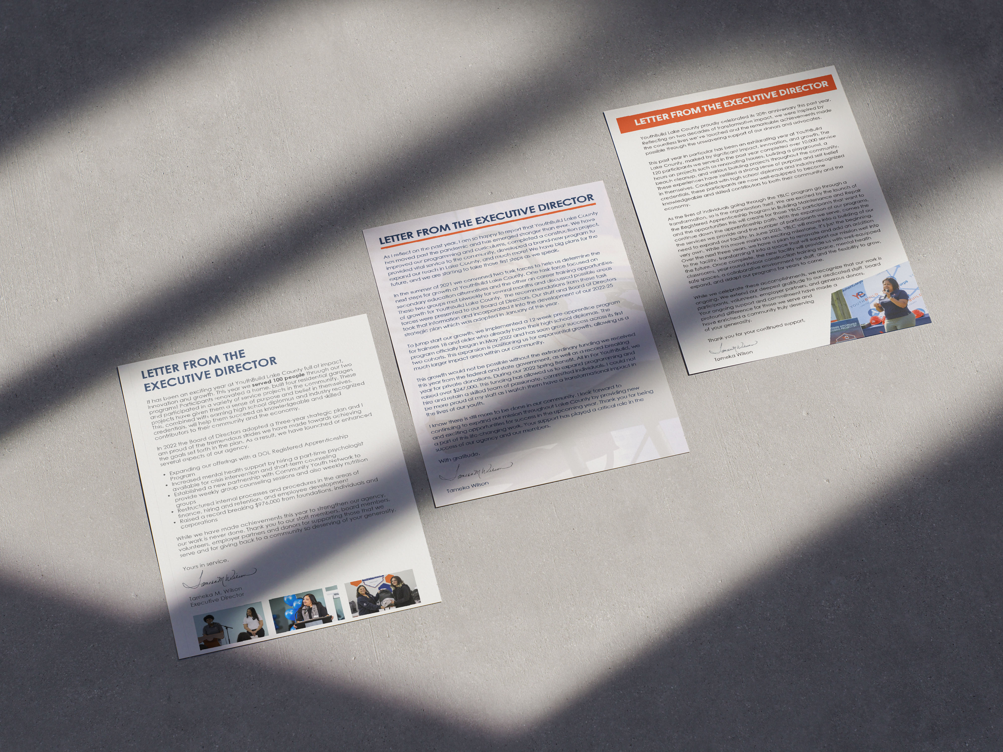 I write leadership letters and talking points on behalf of YouthBuild Lake County’s Executive Director for Annual Reports, Impact Reports, donor communications, and public-facing materials. This work requires translating organizational priorities, data, and outcomes into a clear, authentic voice that reflects leadership intent while remaining accessible to varied audiences.